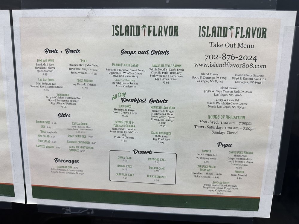 Island Flavor, a Hawaiian restaurant, located in Las Vegas, offers a variety of delicious dishes with generous portions. Customers rave about the Furikake Garlic Chicken, Katsu Chicken, and Teriyaki Chicken, all cooked perfectly and packed with flavor. The Ube Cheesecake and Guava Cakes are highly recommended for dessert lovers. The ambiance is described as chill, with friendly staff offering excellent service. The menu includes options for lunch, dinner, and brunch, with limited vegetarian choices available. Island Flavor is a must-try for those craving authentic Hawaiian plate lunches and tasty cakes. Additionally, the restaurant provides excellent catering services and even offers a military discount. Enjoy a taste of Hawaii at Island Flavor, where the food and experience are sure to leave you satisfied and coming back for more.